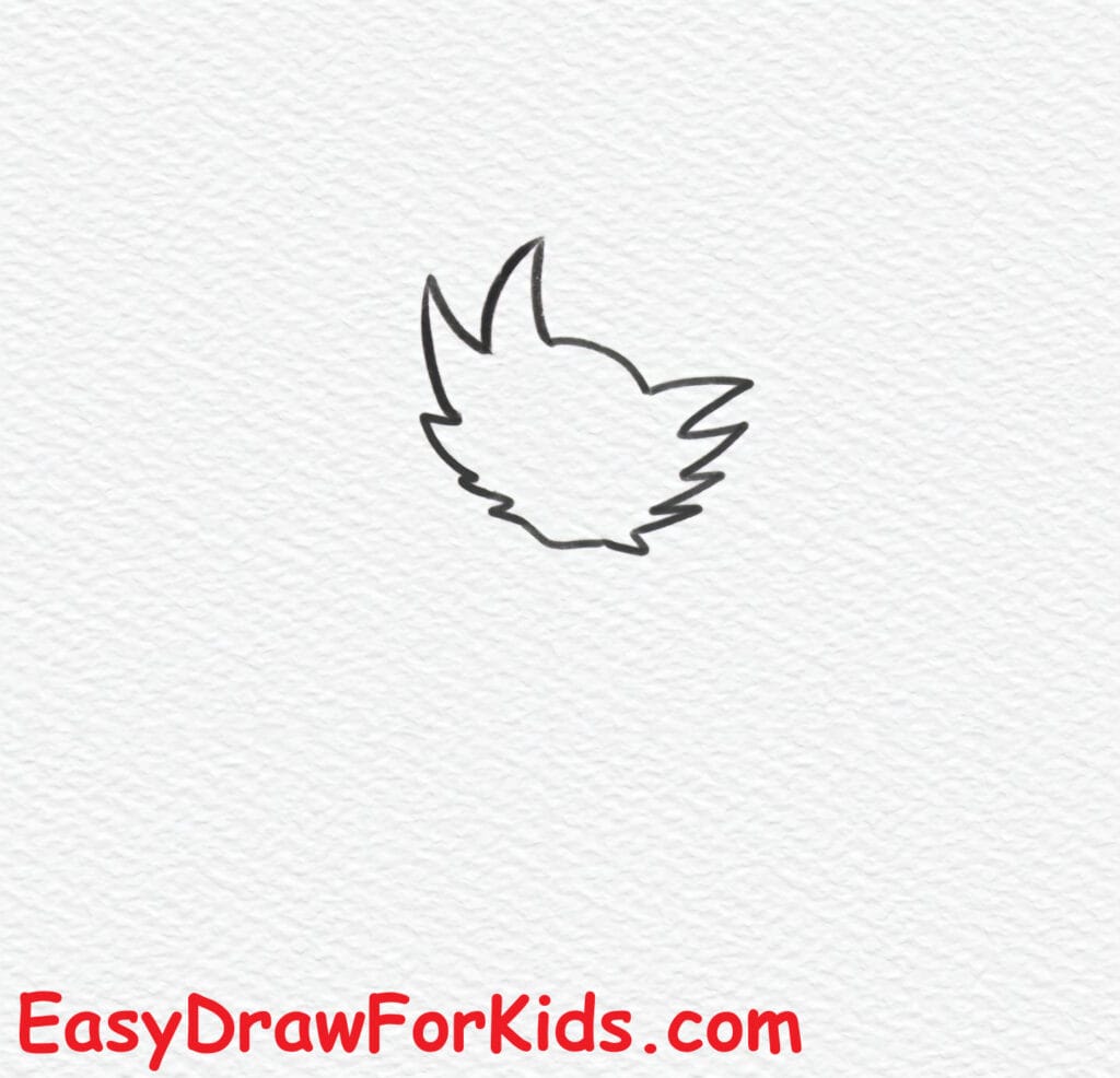 Step 3: Start adding the top part of the hair using several zigzag spikes. Hair should curve upward in thick, pointed tufts.